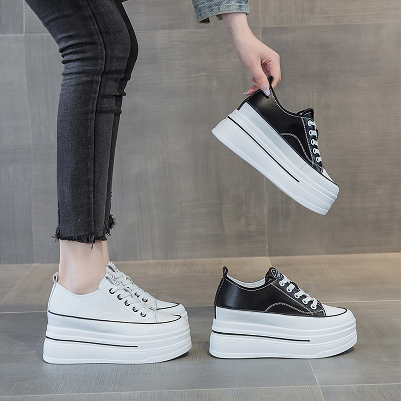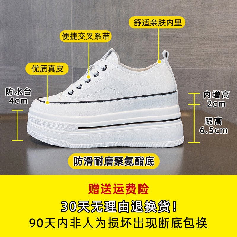 女秋冬百搭厚底低帮松糕女鞋 2025年新款 透气8CM内增高真皮小白鞋