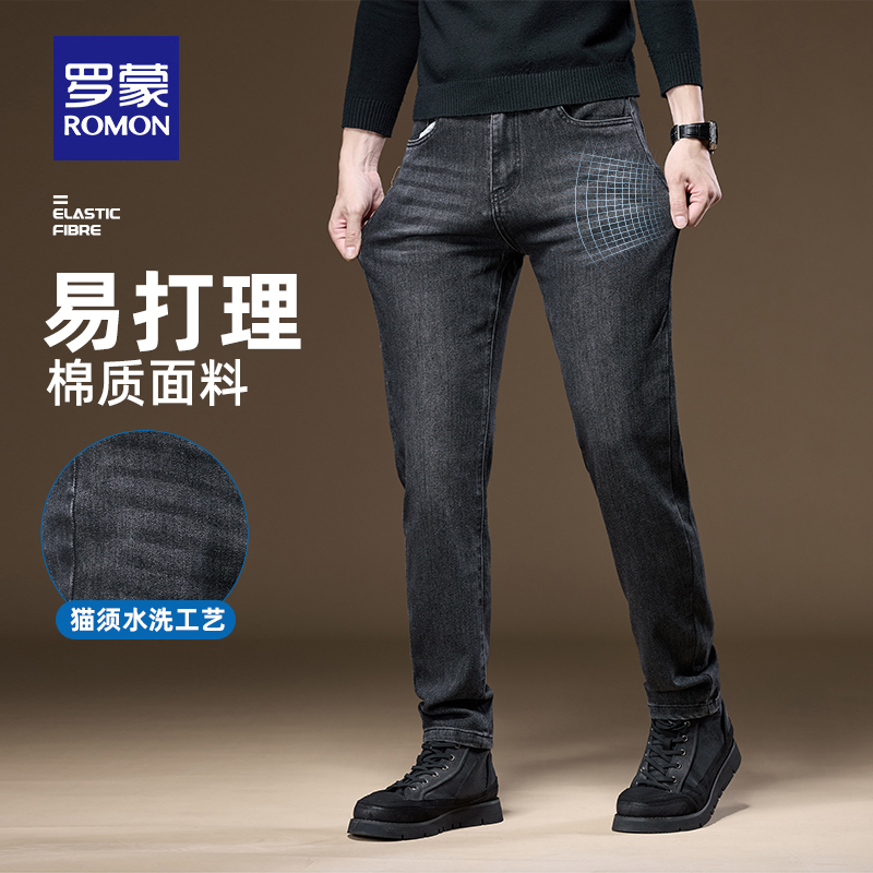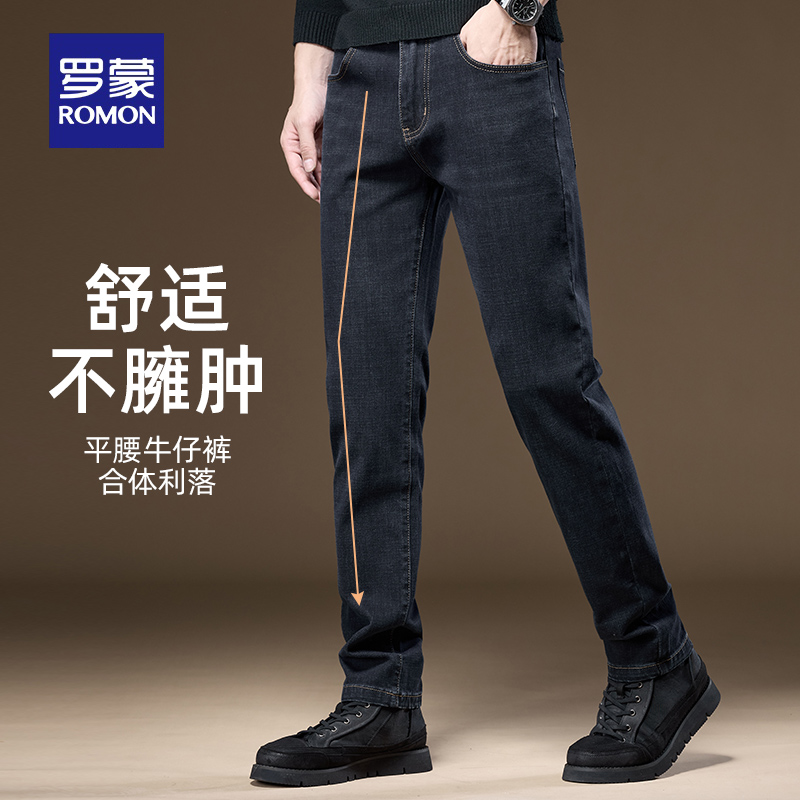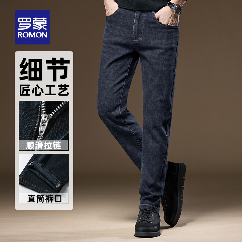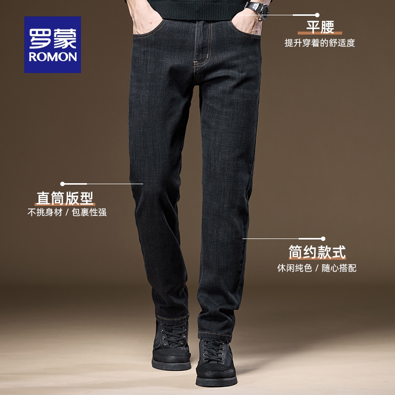 休闲直筒牛仔裤 子男装 2025秋冬新款 显瘦长裤 加绒加厚修身 罗蒙男士