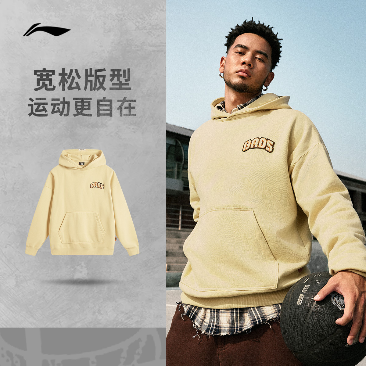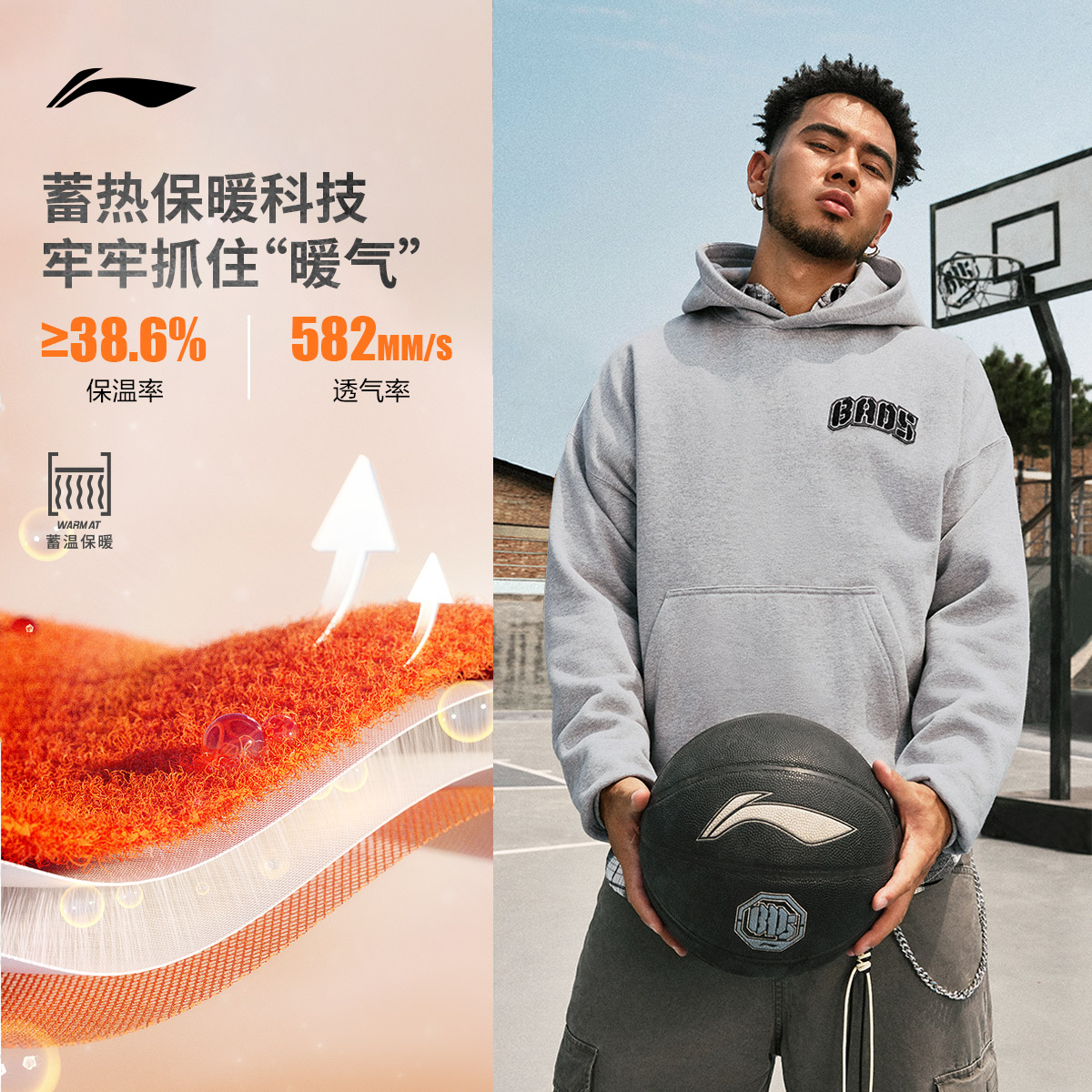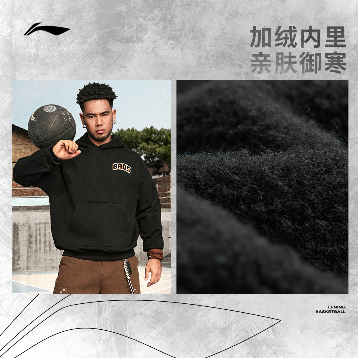 加绒加厚宽松保暖运动上衣男士 李宁卫衣女秋冬新款 情侣圆领套头衫