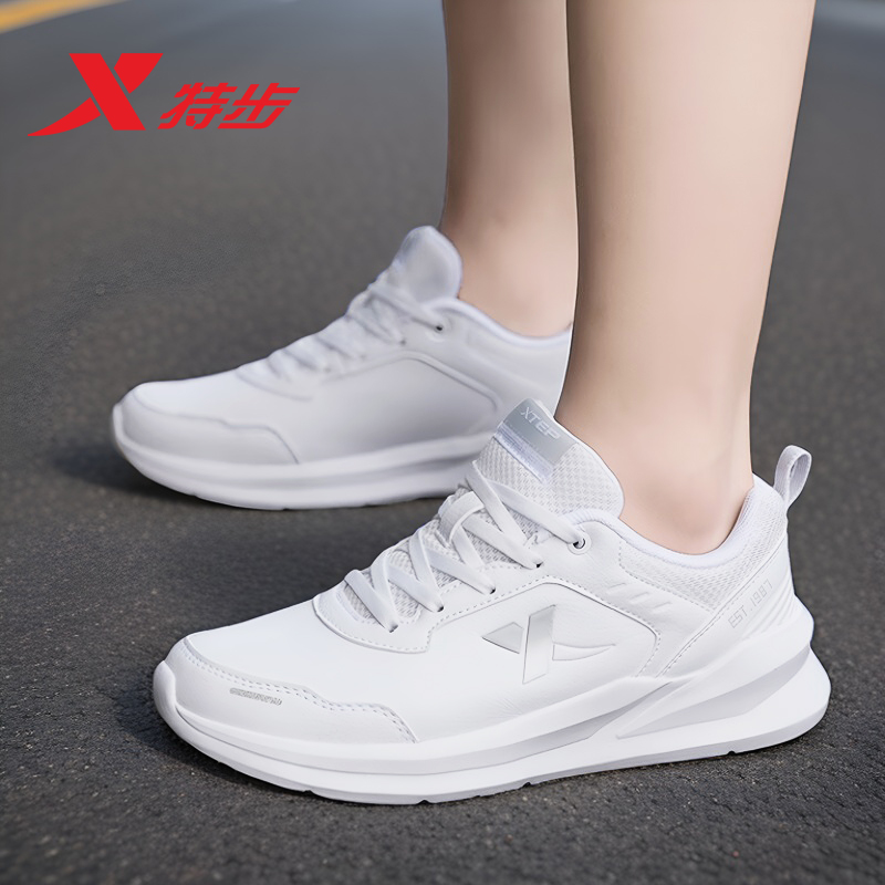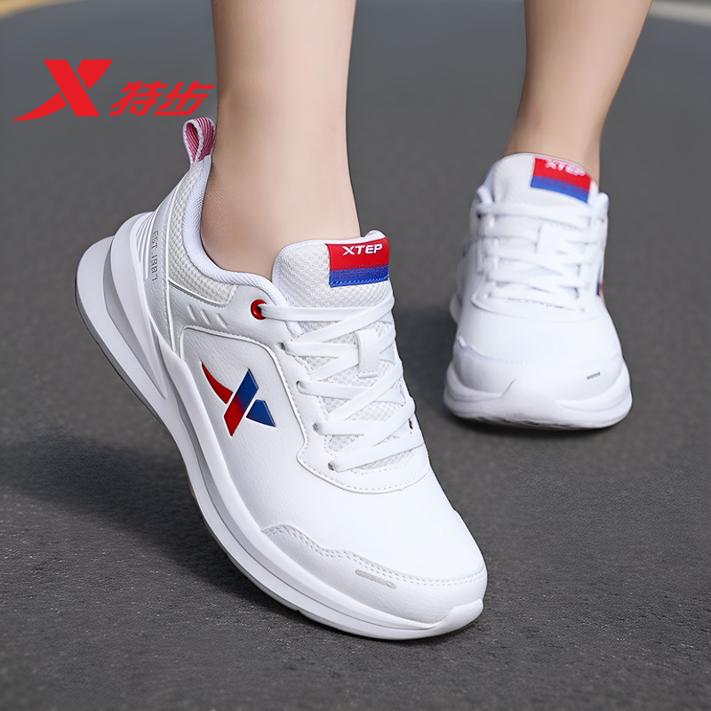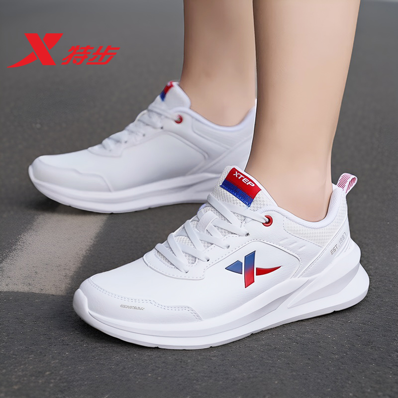跑步鞋 官方旗舰运动鞋 2025新款 小白鞋 秋冬轻便皮面休闲鞋 特步女鞋