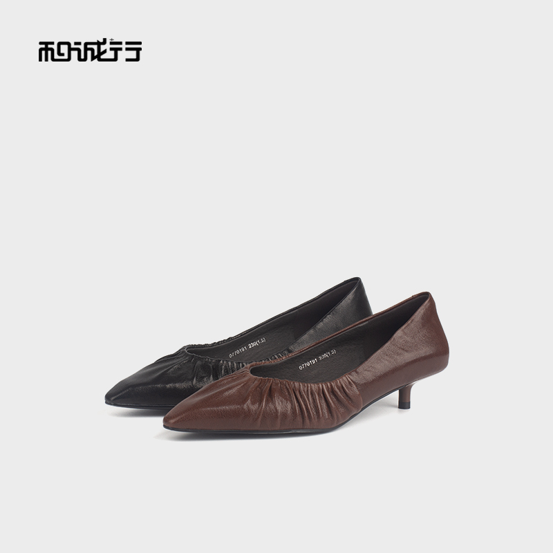 女气质中跟单鞋 和诚行 复古尖头浅口单鞋 法式 0770191 2024秋冬新款