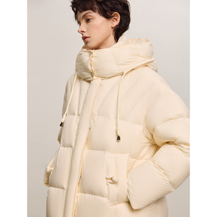 LILY90白鸭绒冬新款 显瘦加厚 连帽宽松云朵泡芙羽绒服女中长款