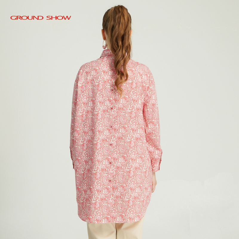 翻领长袖 阁兰秀2025春夏粉色衬衫 宽松显瘦上衣女松弛感 100%棉