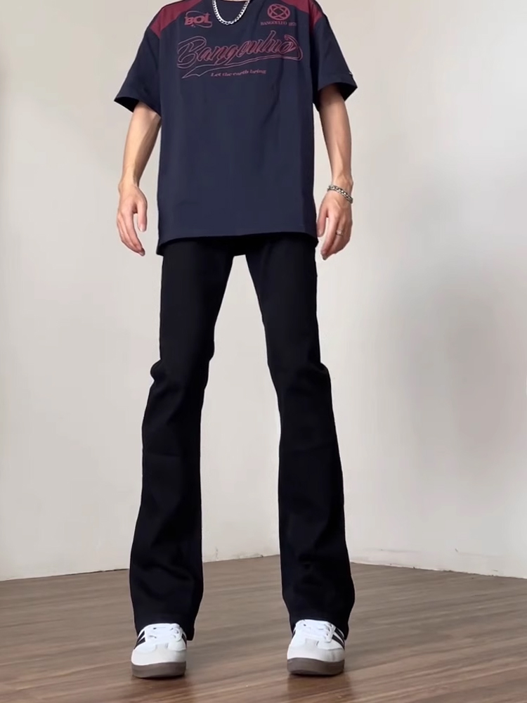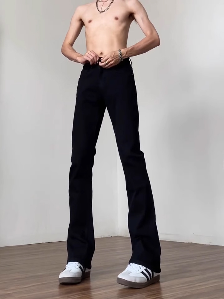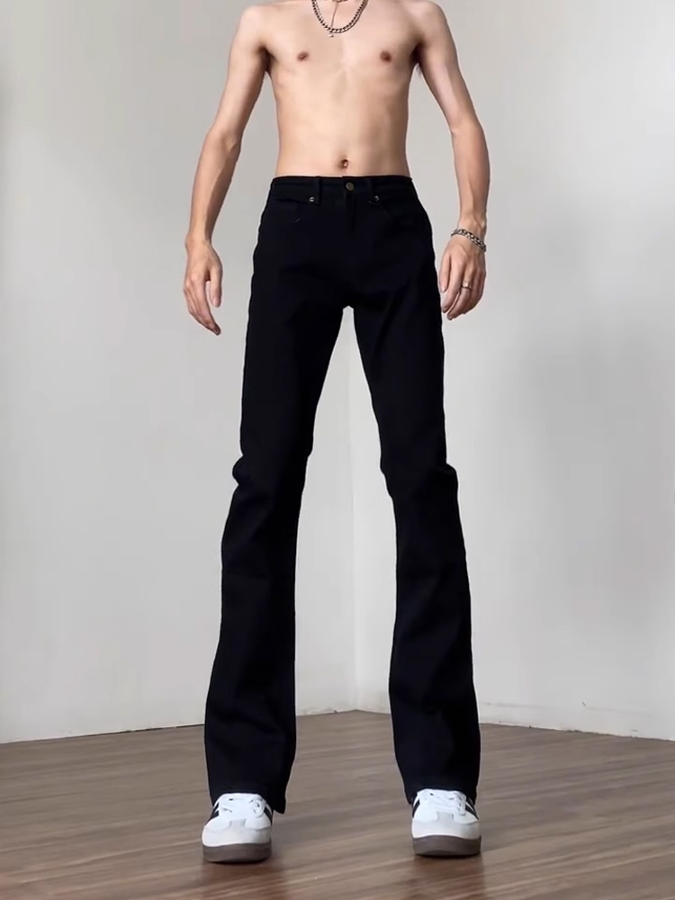 子少年感显瘦直筒微喇裤 cleanfit黑色牛仔裤 怪兽实验室裤 修身 男款