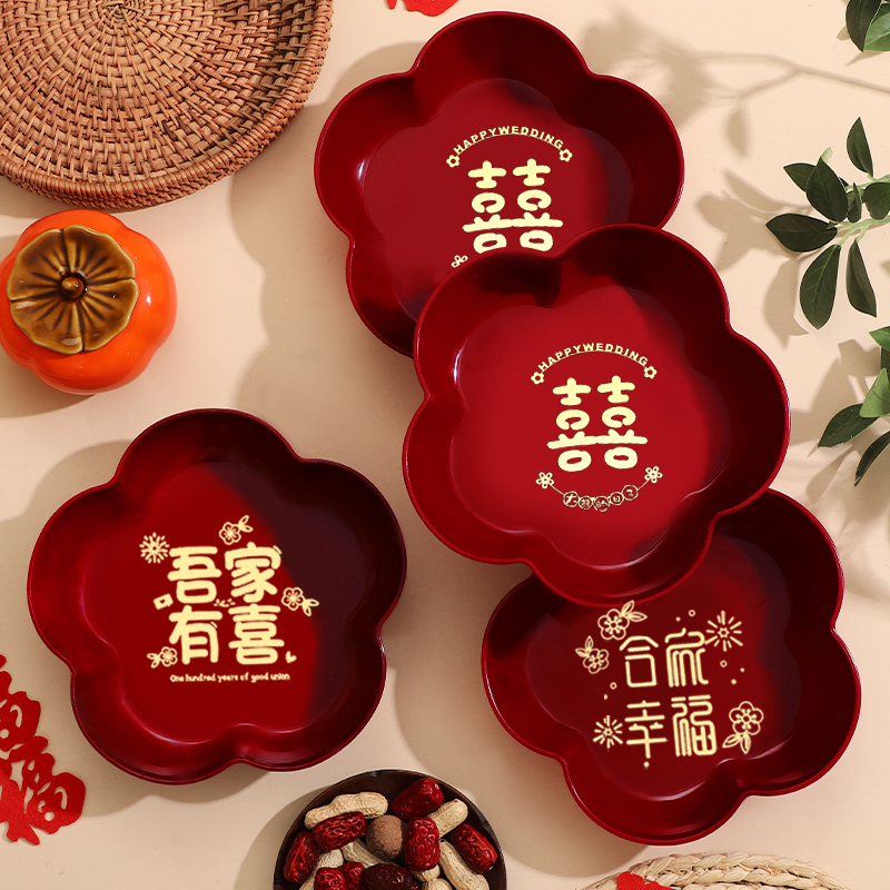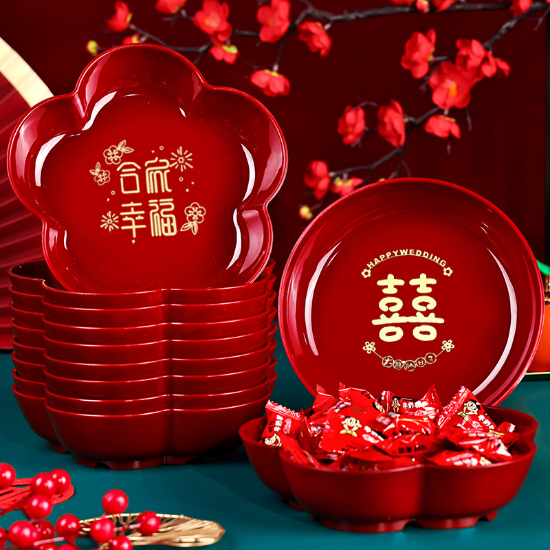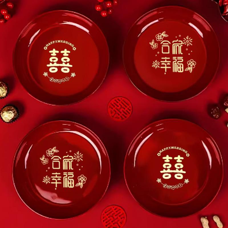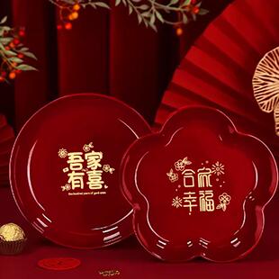 结婚红色茶杯托盘创意礼盒婚礼喜糖盘子订婚礼品套组婚庆用品大全