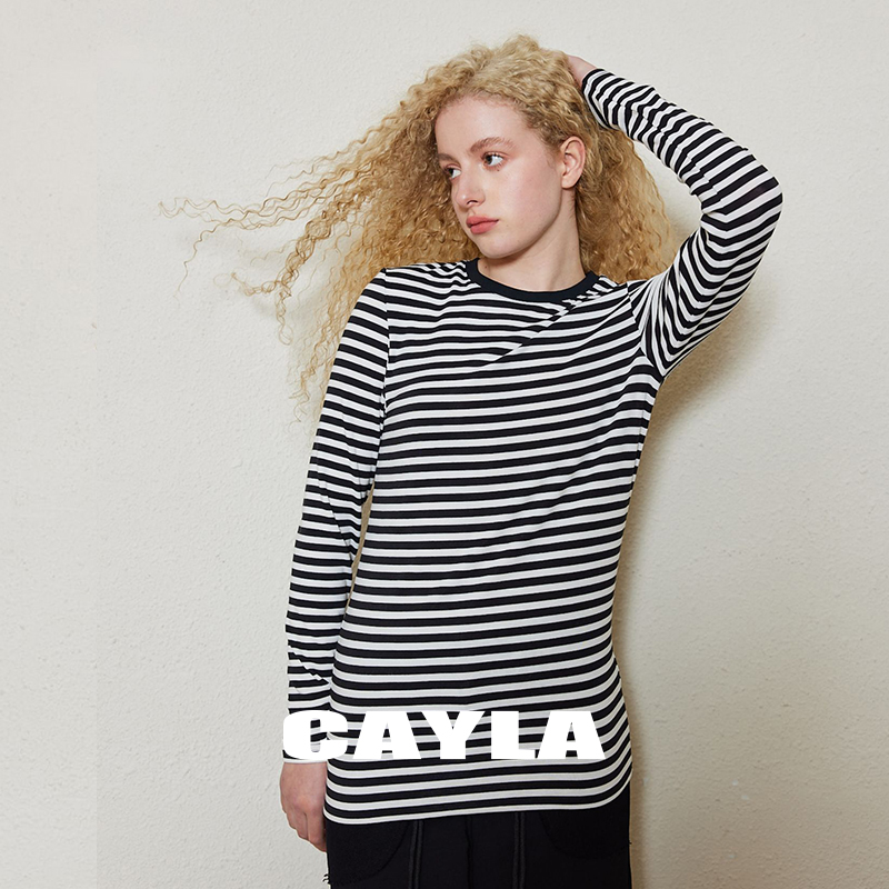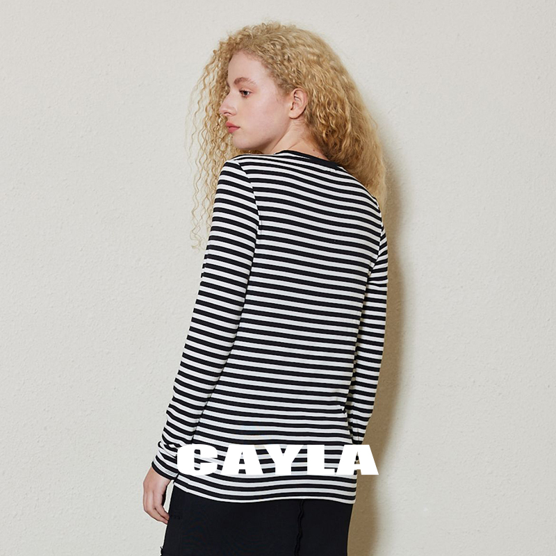 棉质亲肤长袖 CAYLA条纹打底休闲修身 上衣女24AW055 清仓5折购
