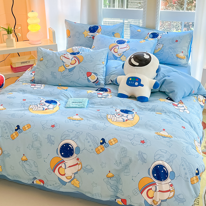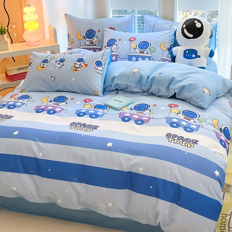 无印良品全棉床单学生宿舍纯棉卡通儿童被套床单三件套床上用品