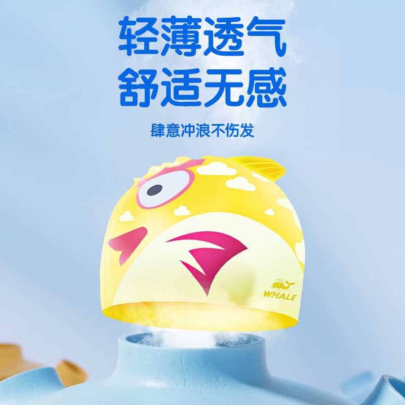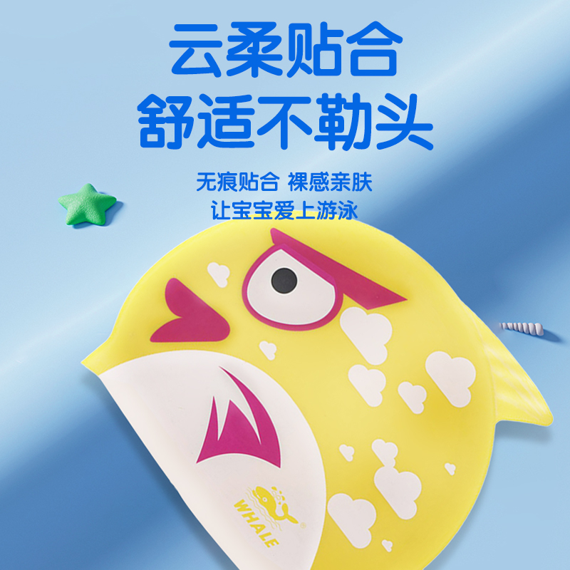 鲸鱼儿童泳帽女童不勒头硅胶防水游泳帽女款 布帽男童女童2024新款