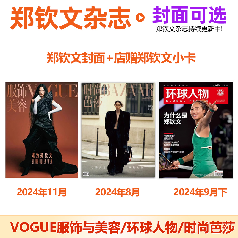 郑钦文封面 店赠小卡 2024年10 ELLE 11月 VOGUE服饰与美容杂志2025年 10月 之苑 计入销量 ELLE世界时装