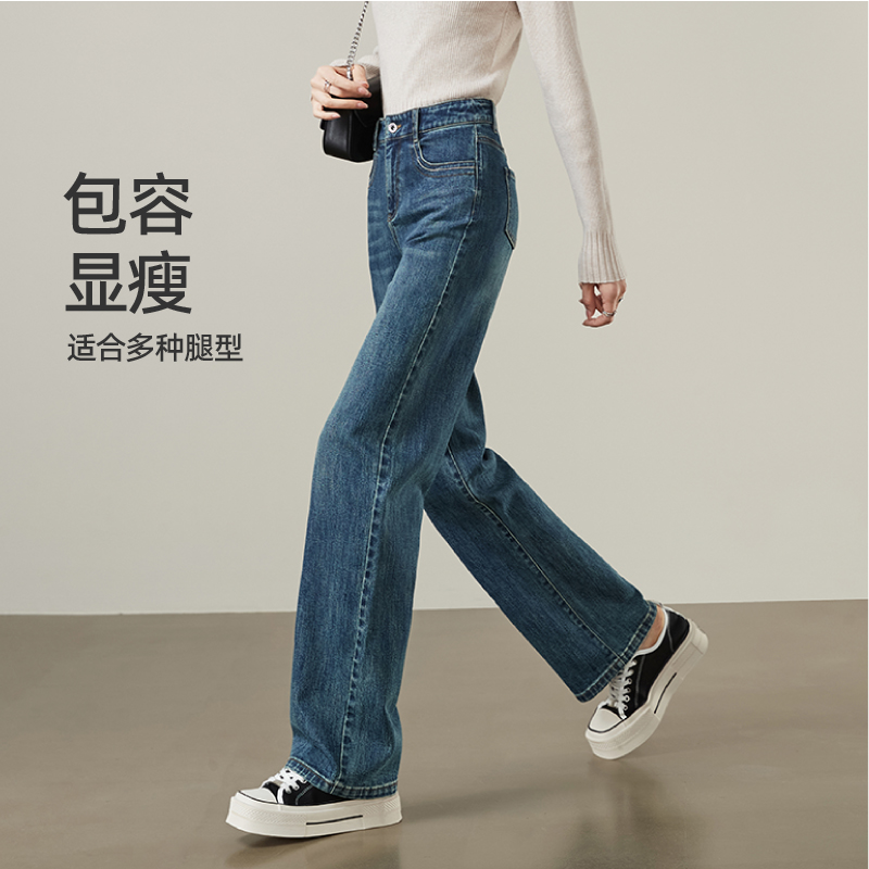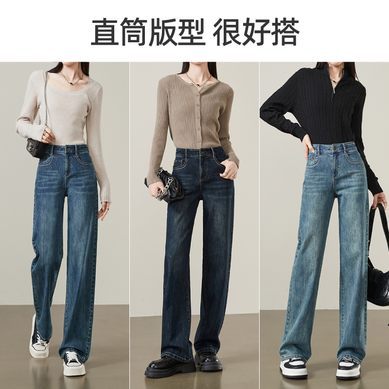 阔腿裤 逸阳复古长直筒牛仔裤 宽松显瘦弹力女士窄版 新款 女2025秋季