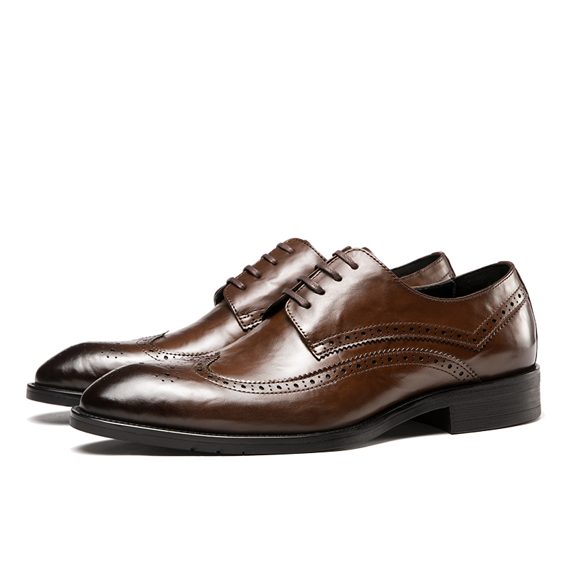 系带尖头英伦真皮透气结婚单鞋 布洛克雕花男鞋 皮鞋 商务正装 子 男士