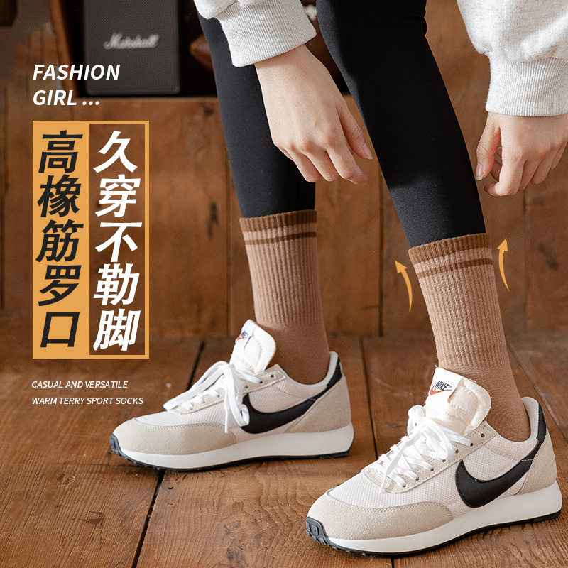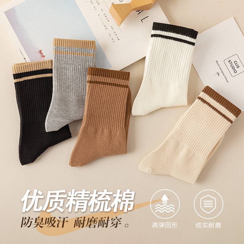 配鲨鱼裤 袜子女春秋中筒运动防臭透气条纹ins潮纯棉秋冬长袜黑色