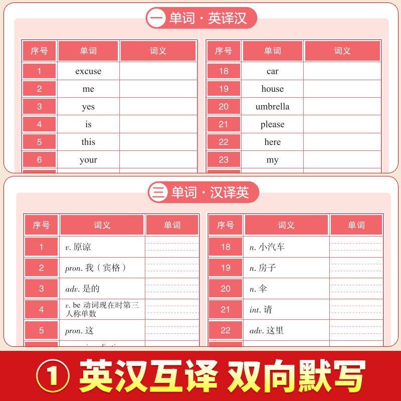 新概念英语英汉互译自学入门同步强化题练习册 新概念英语同步单词短语句子默写第一二三四册英汉互译强化训练默写本成人版 荣恒