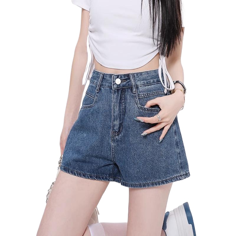 宽松显瘦小个子阔腿a字热裤 新款 女2024夏季 蓝色高腰牛仔短裤