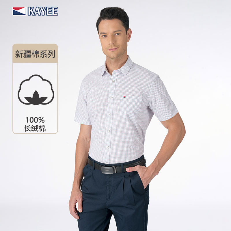 纯棉蓝色格子衬衫 宽松休闲夏季 抗皱易打理A54301 短袖 嘉意衬衣男款