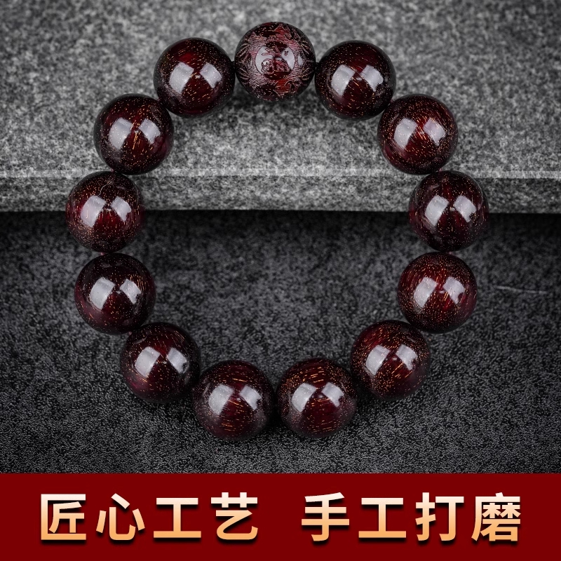 印度小叶紫檀手串檀香木十二生肖雕刻20男士 文玩盘玩念珠佛珠手链
