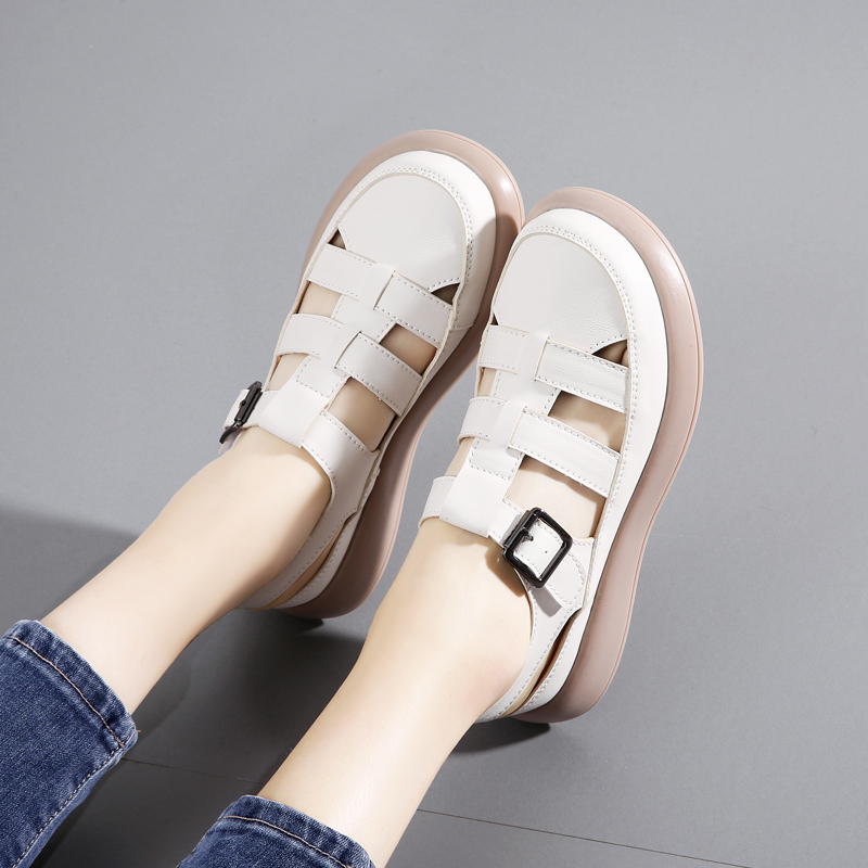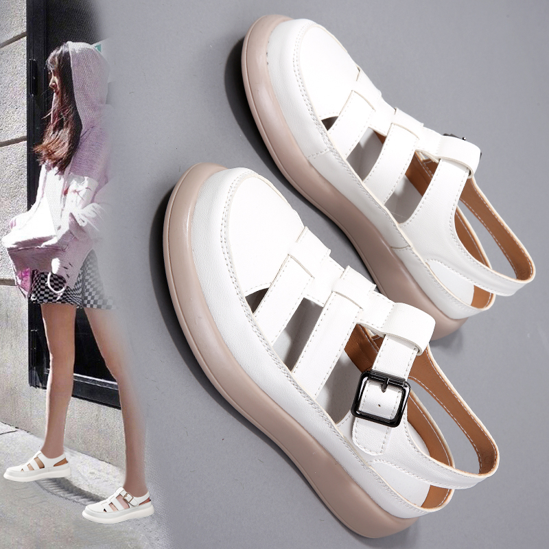 41一43真皮罗马凉鞋 女鞋 女2025新款 猪笼鞋 夏季 孕妇镂空小白鞋 大码
