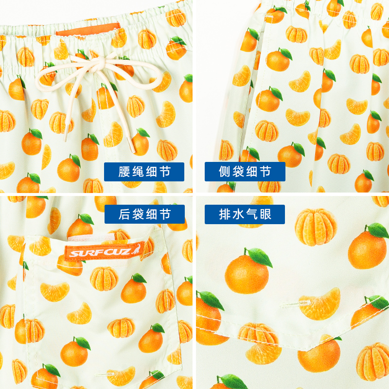 宽松海边度假浅黄色印花沙滩裤 surfcuz男士 速干可下水大码