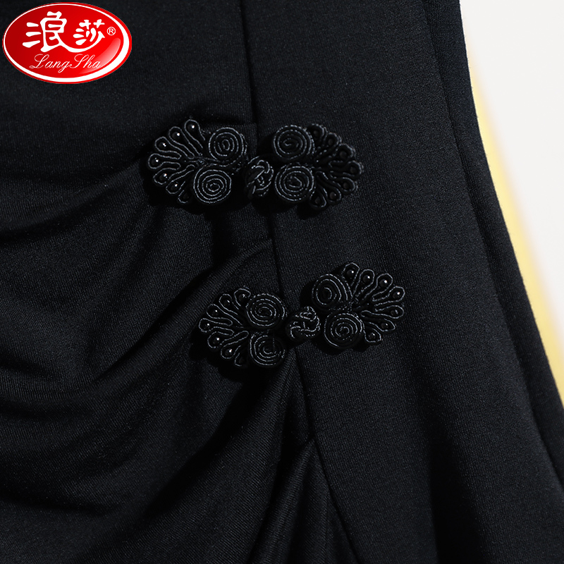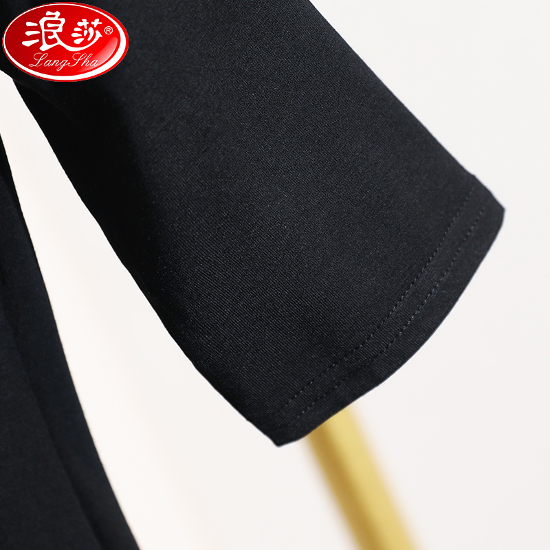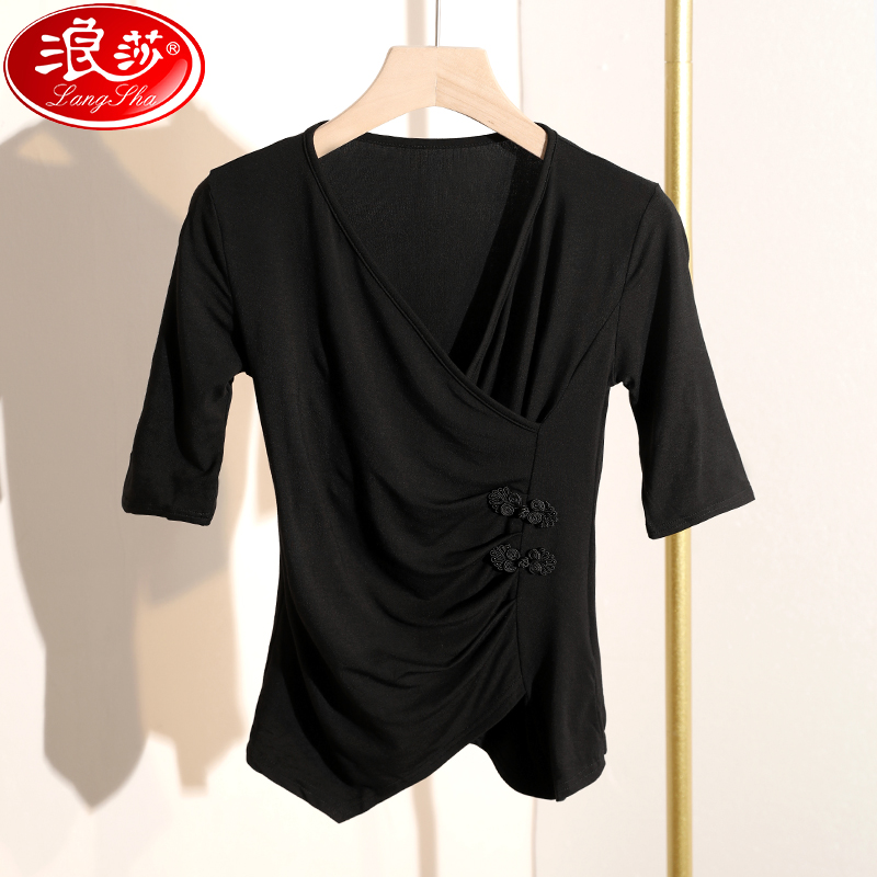 国风黑色中袖 浪莎盘扣V领T恤女五分袖 莫代尔女装 新款 上衣 2025夏季