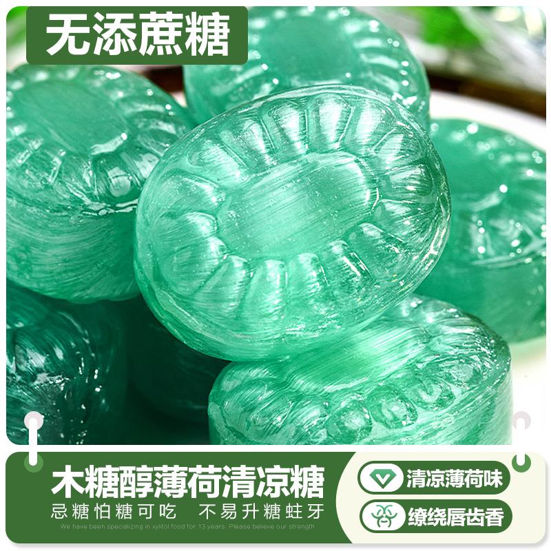 木糖醇薄荷糖500g无糖精糖果强劲清凉口气清新招待袋装 零食糖尿人