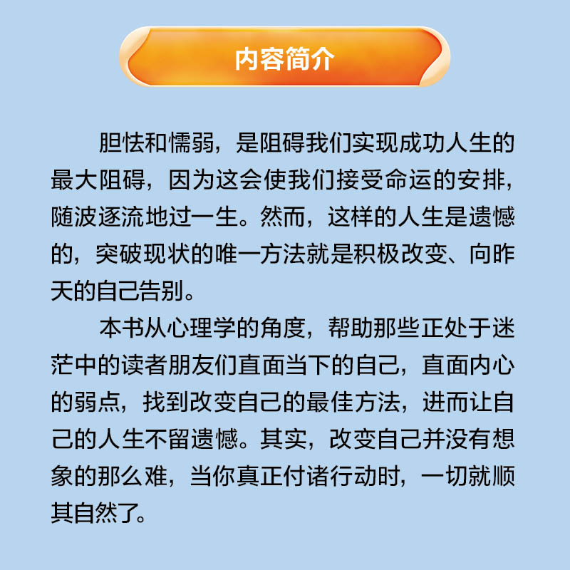 直面当下 自己直面内心 弱点 遗憾心理 积极改变向昨天 人生告别 改变自我奋起直追拥抱幸福 自己告别不留遗憾 是时候了想遗憾
