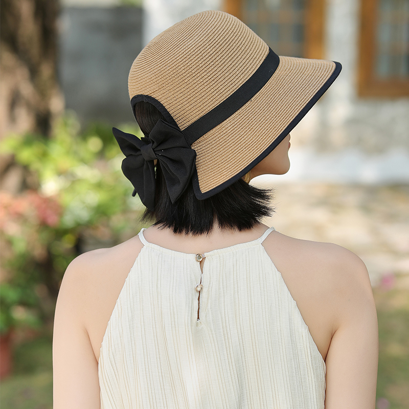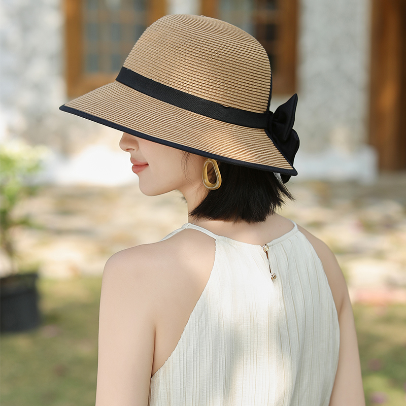 赫本风法式 大檐海边度假紫外线防晒遮太阳帽子 草帽女夏天2024新款