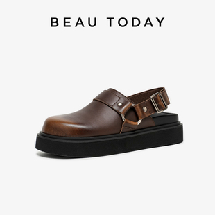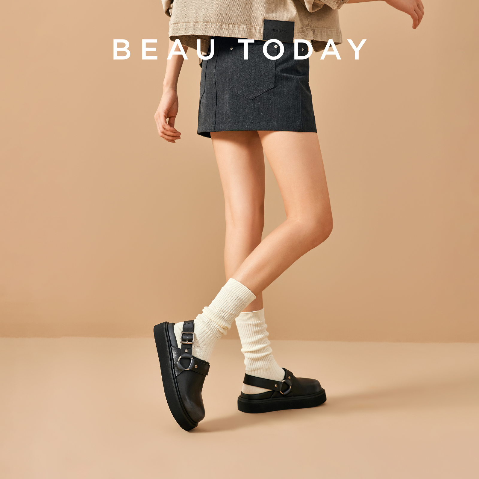 女外穿一脚蹬拖鞋 BeauToday厚底勃肯鞋 包头拖鞋 秋季 女黑色半拖鞋