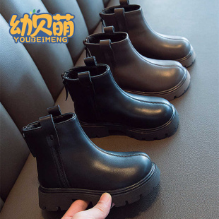 百搭单靴 儿童短靴加绒马丁靴宝宝皮靴时尚 女童靴子2025新款 秋冬季