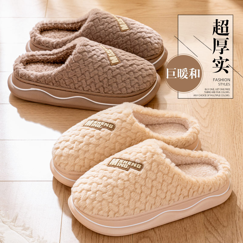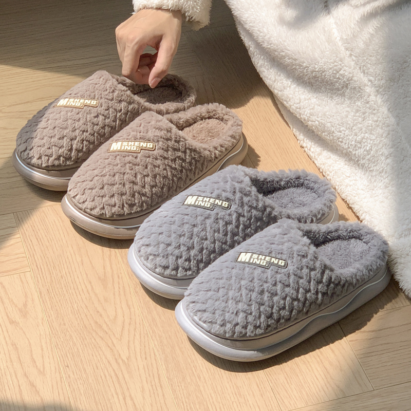 防滑室内家居保暖厚底情侣简约毛绒棉拖 2024新款 棉拖鞋 女士秋冬季