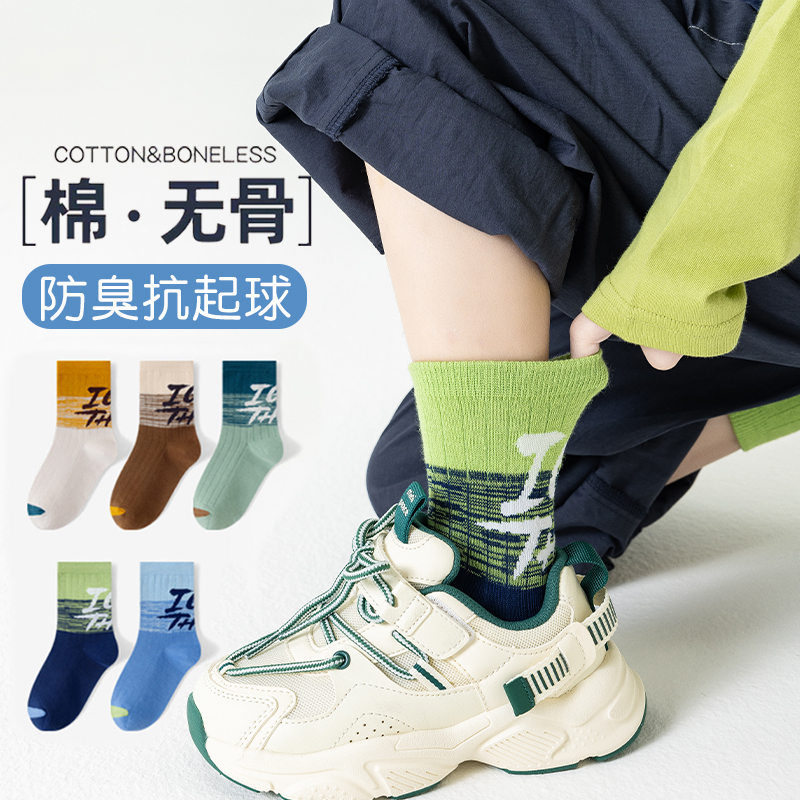 男童袜子纯棉春秋儿童男孩青少年运动防臭秋冬季 无骨学生中筒潮袜