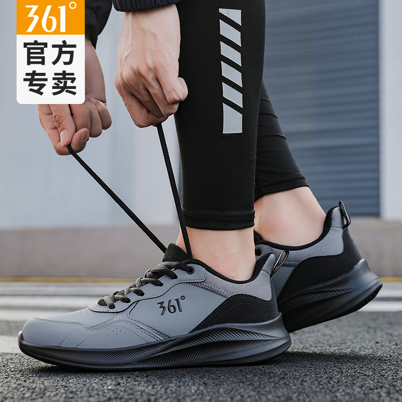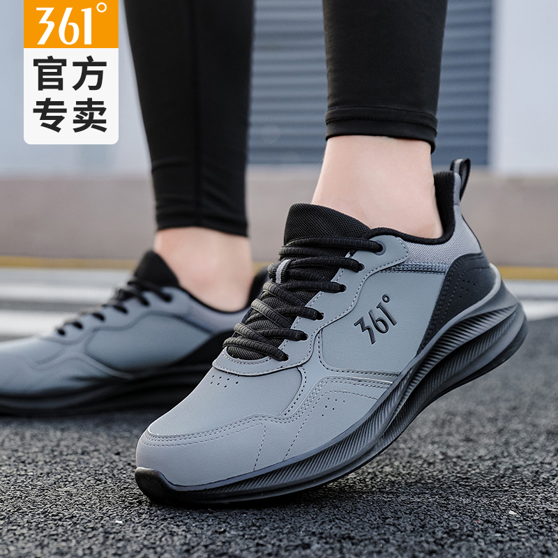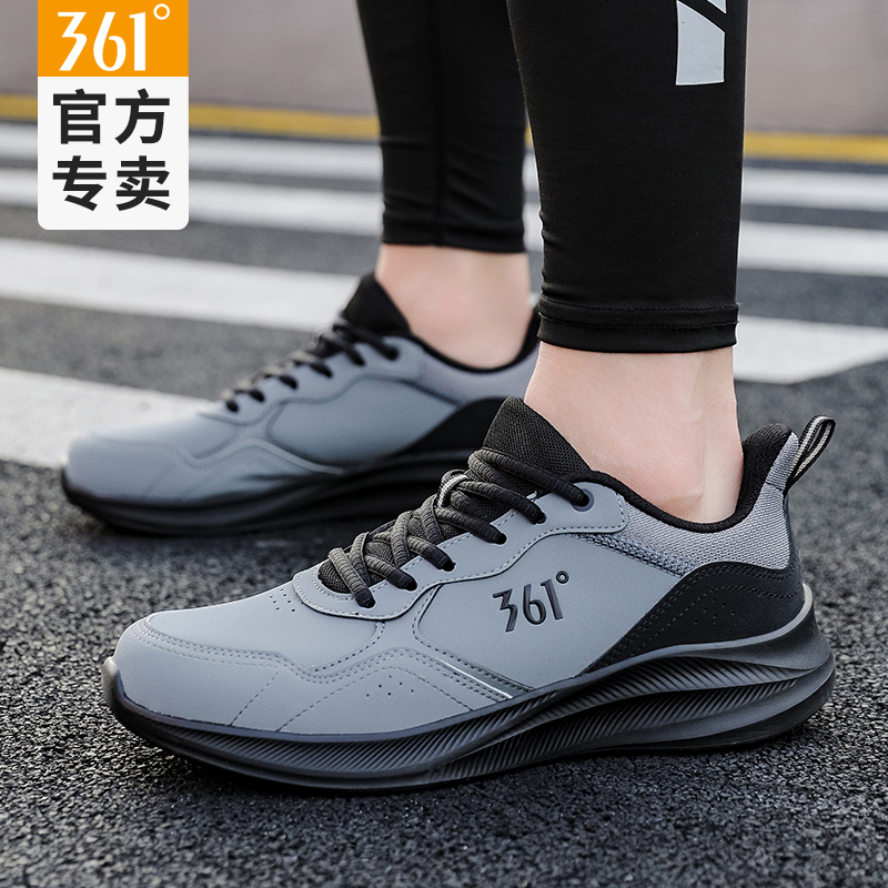 男款 皮面防水软底学生跑步鞋 官方旗舰店正品 秋季 男鞋 361度运动鞋