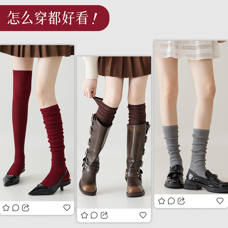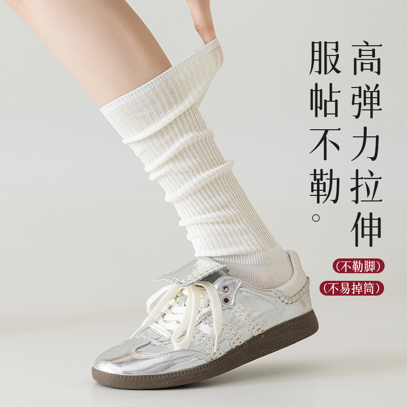 小腿袜子女春秋季 JK潮 过膝袜纯棉中筒袜微压显瘦无骨长筒长袜夏季