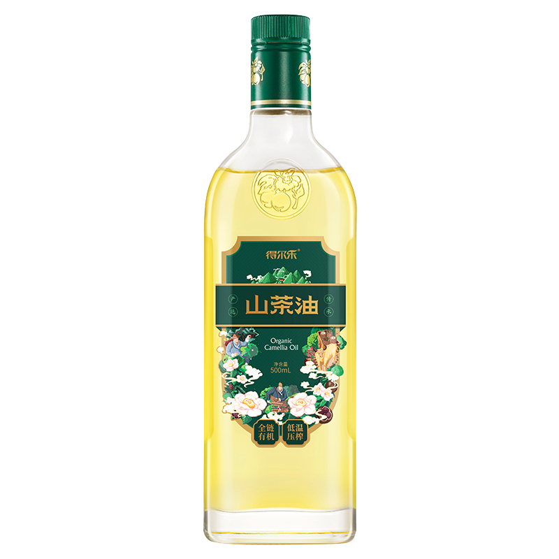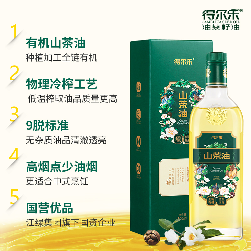 得尔乐有机认证物理低温冷榨山茶油500ml 瓶油茶籽油