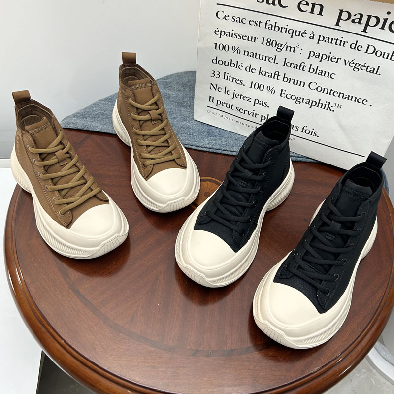 靴子 真皮防水厚底增高工装 森马马丁靴男秋季 高帮百搭休闲白色板鞋