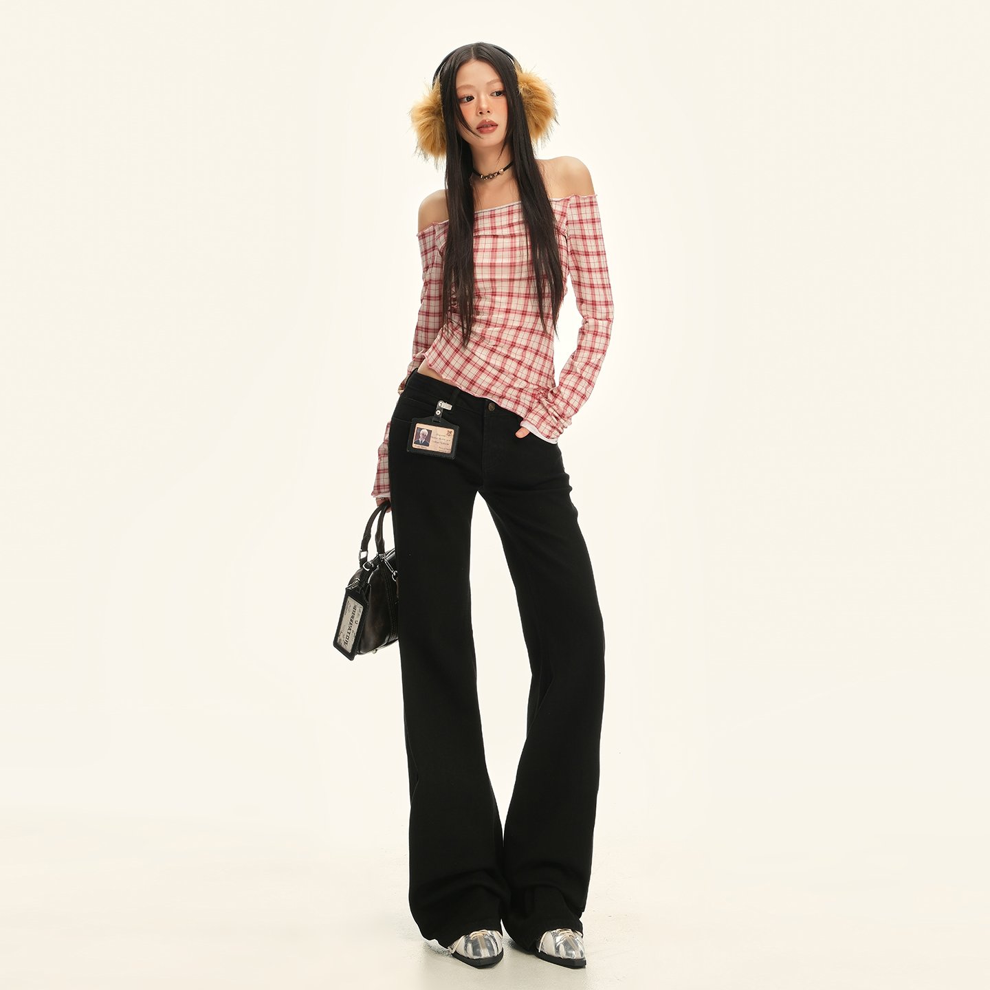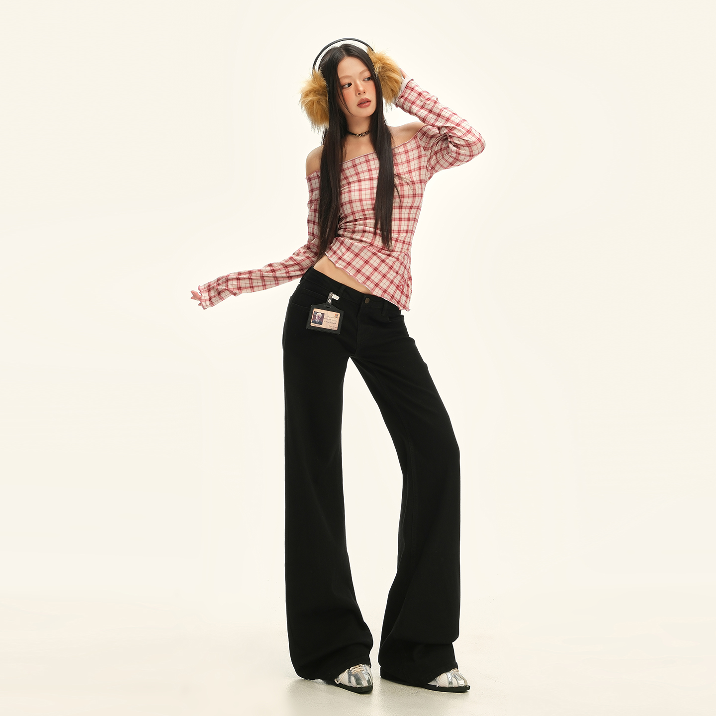 宽松垂感慵懒风休闲裤 新款 子 女春季 RNBN黑色低腰微喇叭牛仔裤