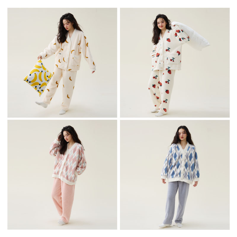 珊瑚绒印花家居服春秋天 新款 暖绒秋冬季 睡衣女士加绒加厚情侣套装