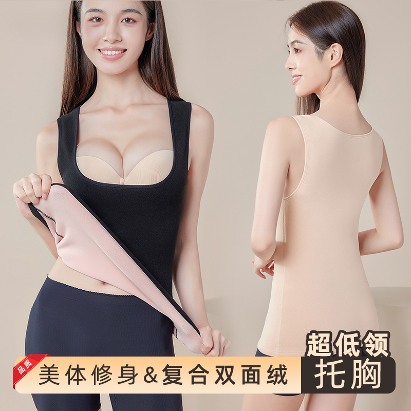 超低领保暖内衣背心产后哺乳衣女汉服礼服打底上衣托胸加绒加厚