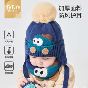 宝宝帽子秋冬季 婴儿针织男儿童毛线帽幼儿男童冬天 护耳帽围脖冬款