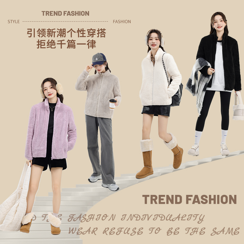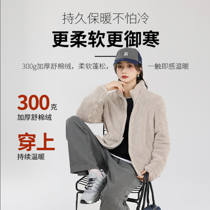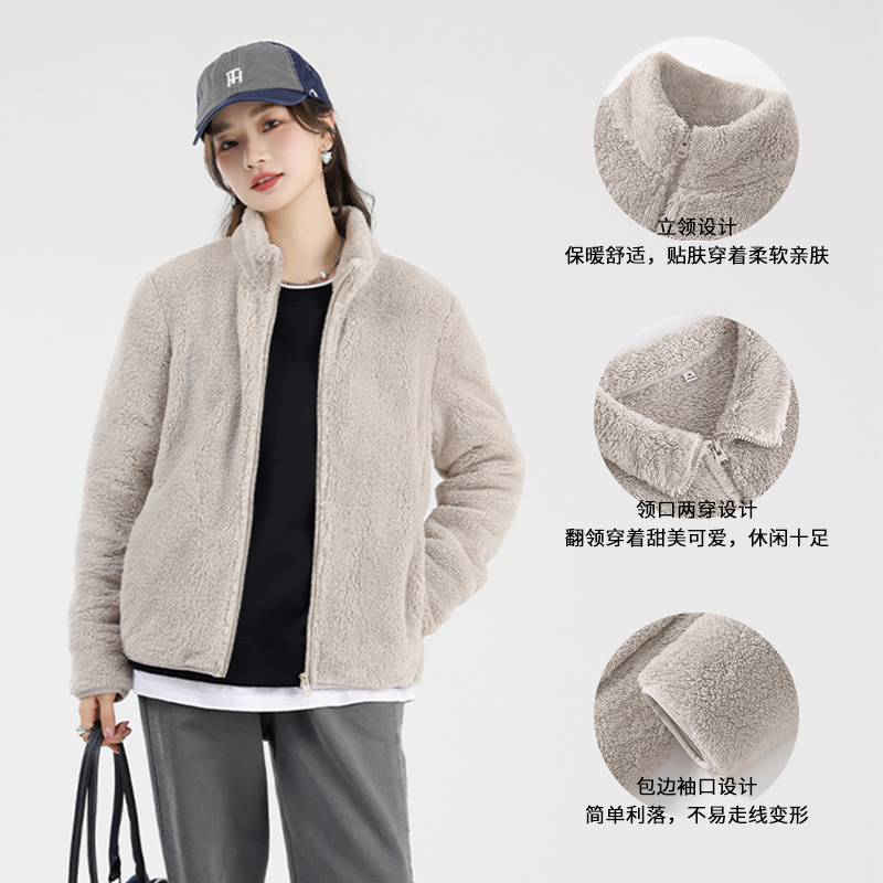 加厚保暖上衣立领开衫 KHV真维斯灰色摇粒绒外套女秋冬季 2025新款