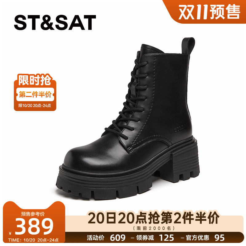达芙妮黑色马丁靴女款 皮靴厚底炸街英伦风增高靴子女短靴 2025秋季