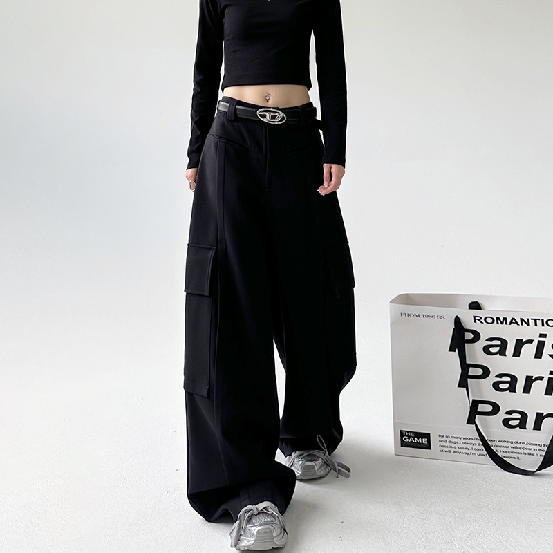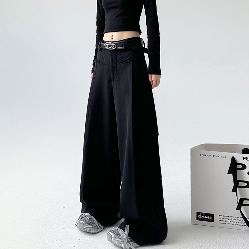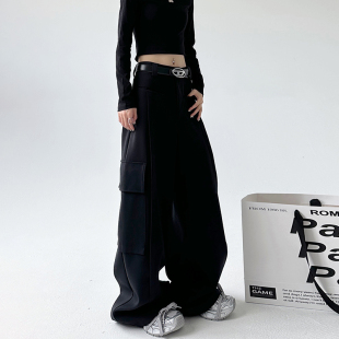 垂感宽松阔腿休闲时髦西裤 街头时髦纯黑工装 新款 女2025秋冬装 裤