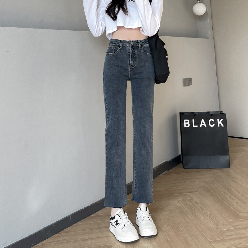 子女2025年新款 复古马蹄牛仔裤 秋季 显瘦紧身喇叭裤 高腰修身 微喇裤