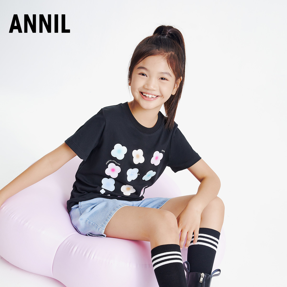 薄圆领半袖 速干T恤2025夏新款 上衣凉爽柔软 针织衫 安奈儿女童短袖