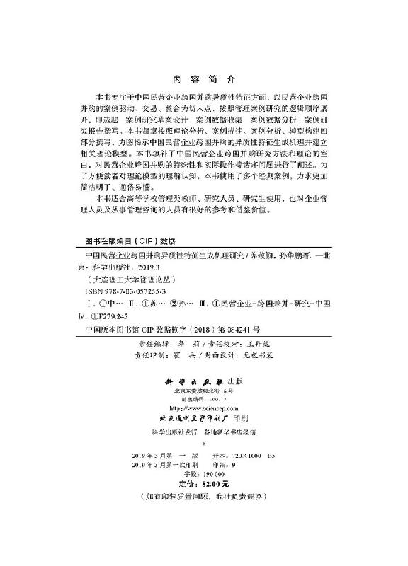 科学出版 中国民营企业跨国并购异质性特征生成机理研究 大连理工大学管理论丛 孙华鹏 社 苏敬勤