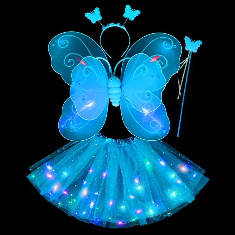 发光小女孩背 天使儿童蝴蝶翅膀背饰女童道具仙女公主魔法棒裙子