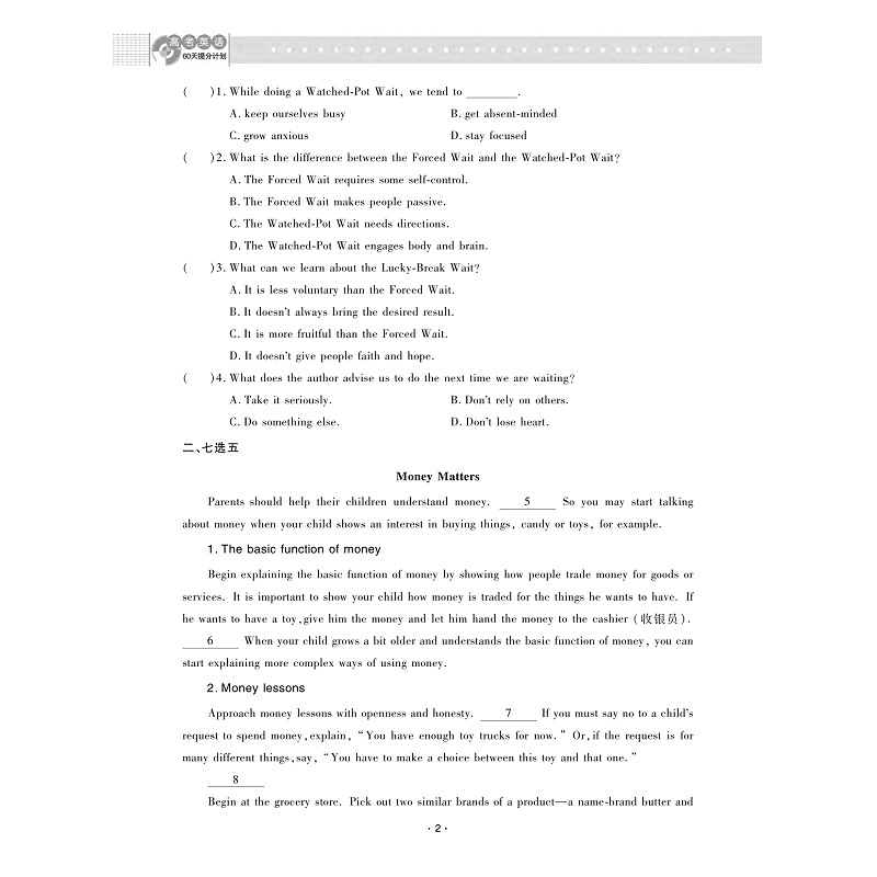 中等水平及以上学生 浙大优学 二轮复习 浙江大学出版 钱剑英 高考英语60天提分计划 社 附参考答案