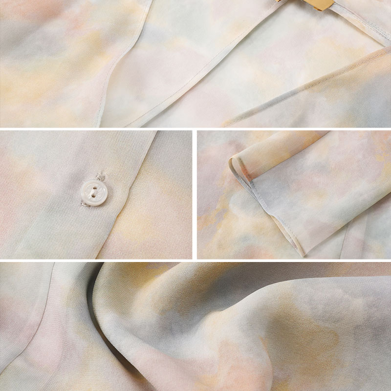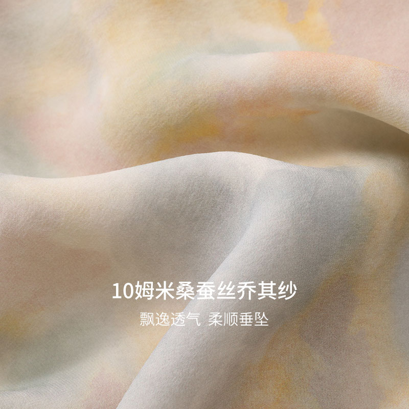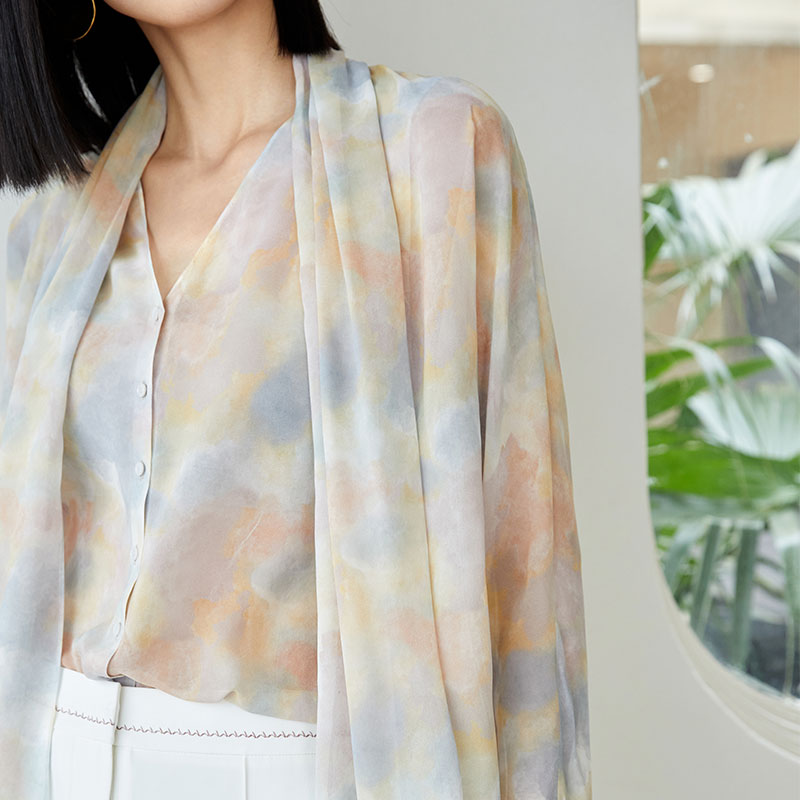 小众法式 新款 印花V领桑蚕丝上衣 女春季 玳莎披肩领设计感真丝衬衫