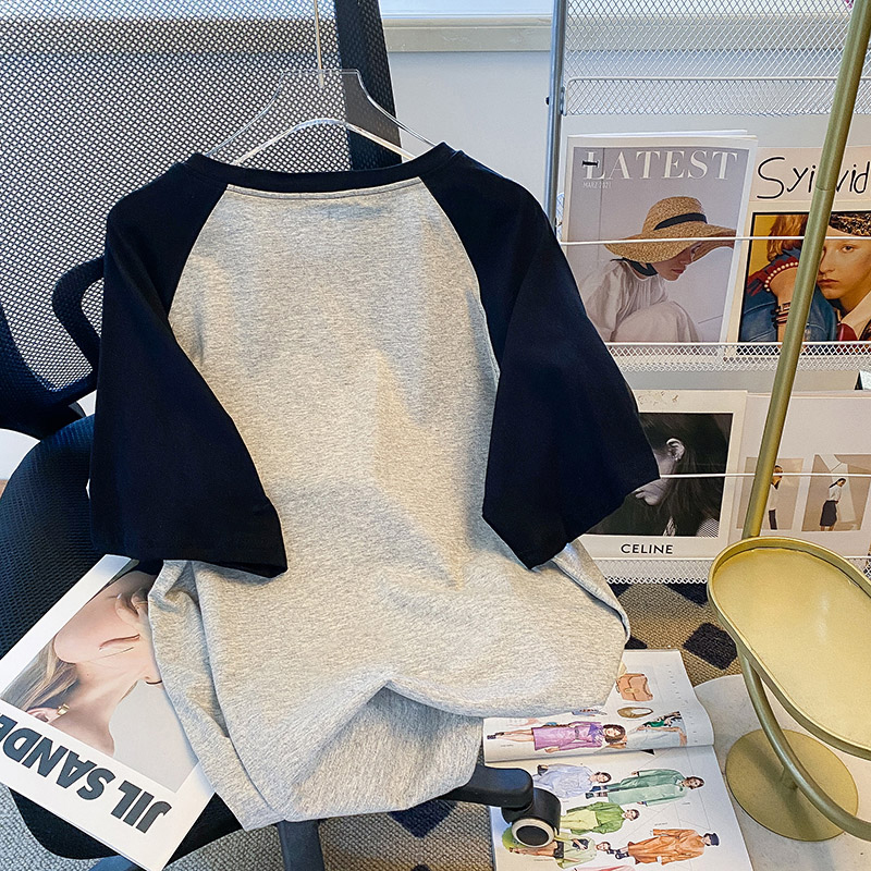 t恤女2023新款 上衣大码 插肩袖 美式 胖mm显瘦 宽松纯棉半袖 潮牌短袖