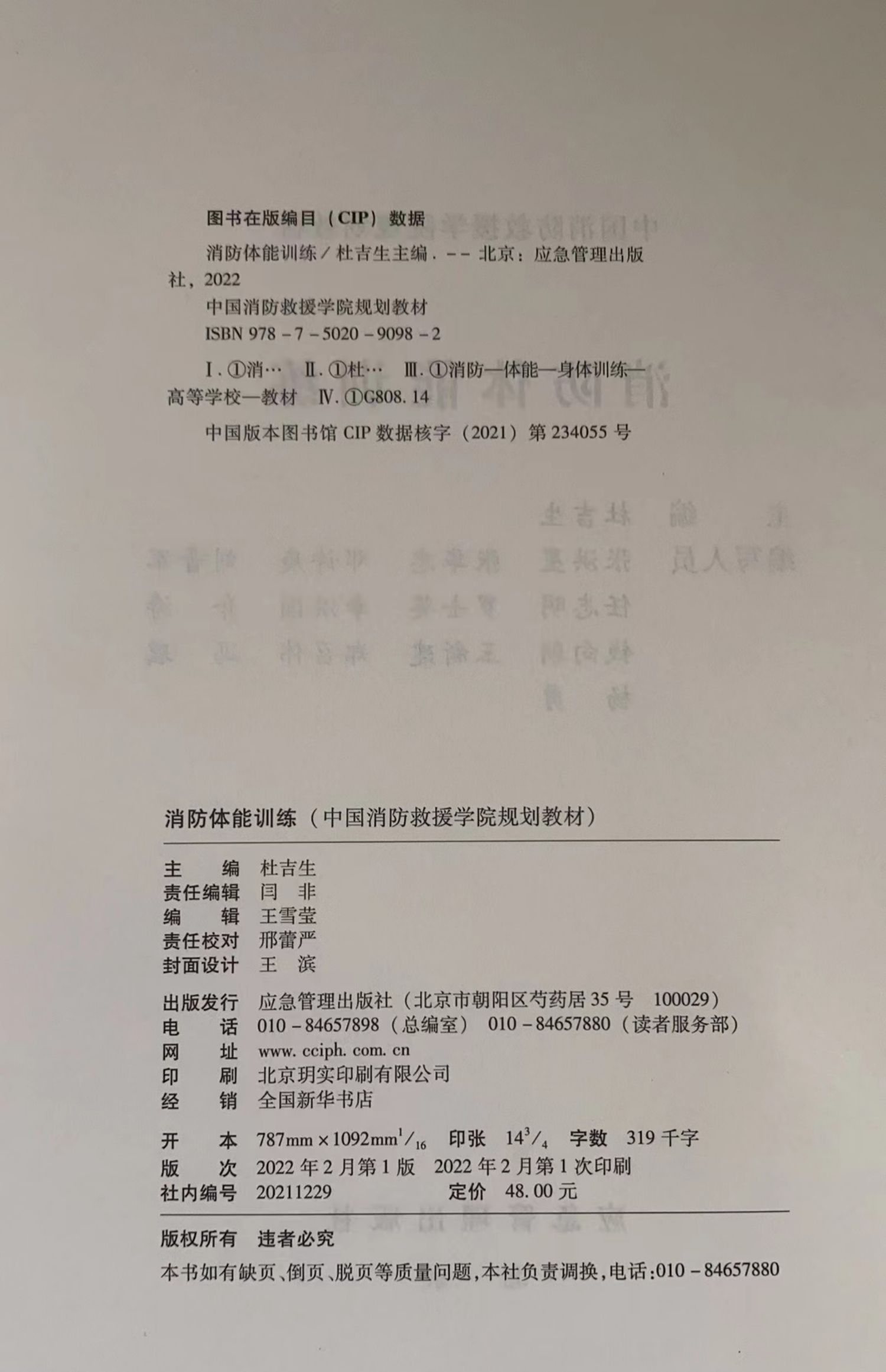应急管理出版 9787502090982 社 中国消防救援学院规划教材 消防体能训练