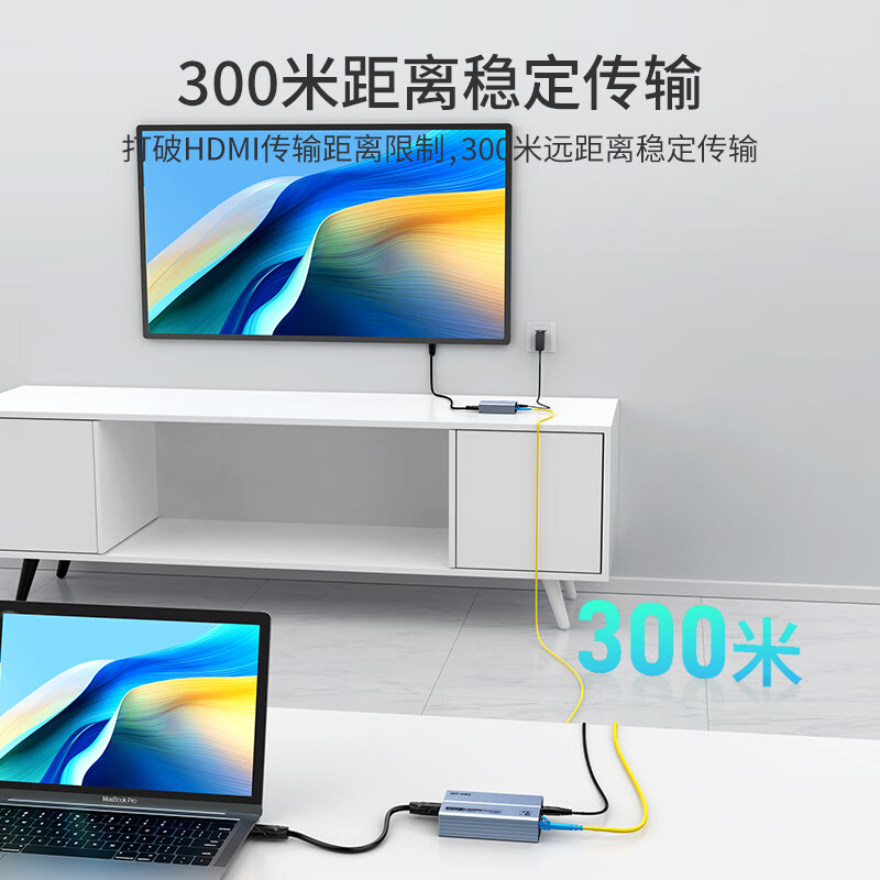 自动识别EDID音视频同步 HDMI光端机延长器300米4K高清HDMI转LC光纤收发器一对装 迈拓维矩ED03